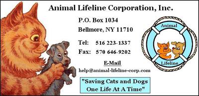 Animal Lifeline, Inc. in Bellmore, NY is a non profit, tax deductible, tax exempt, 501C3 animal rescue incorporated in 1977 for the purpose of aiding the animals in our area. Our mission is to save and home as many cats and dogs as possible.