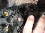 My cat has woke up this morning with a hairless area on his chin and a white bump. He's sitting getting cuddles and ate breakfast but he seems sad.