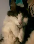 He's so friendly. Here's how it all started. My mom's first cat, she got at Montcalm and his name was mama baby. He looked like a black cat. He was extremely