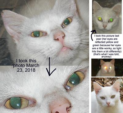 She's not 100% the healthiest white cat ever to exist, and I don't have oodles of money to take her to the vet and try to get her all 100% fixed (wish I did, though). However, I try what I can within my means to help her feel better, even if I can't cure her.