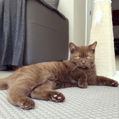 This is 6 month old Hendrix. He is a Cinnamon color British Shorthair with amazing golden copper eyes and the cutest pink paw beans. He is such an affectionate, laid-back and playful boy. He doesn’t mind being picked up and cuddled (he also hasn’t got much choice ) but he does prefer all 4 paws firmly planted on the ground!